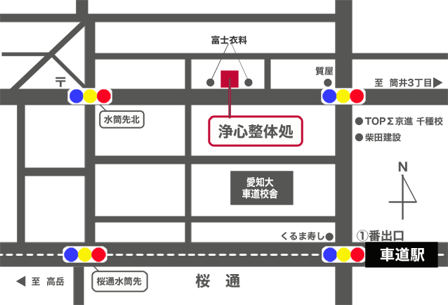 名古屋市東区の整体なら浄心整体処。車道駅1番出口より徒歩3分。専用駐車場完備。30分3000円より